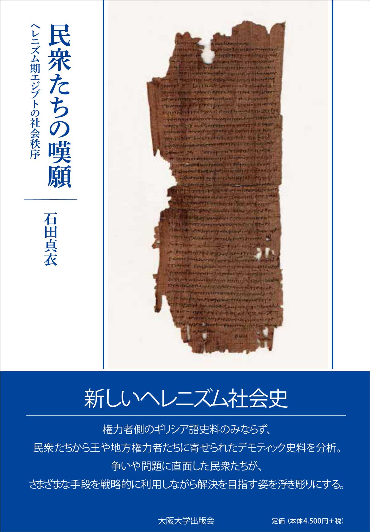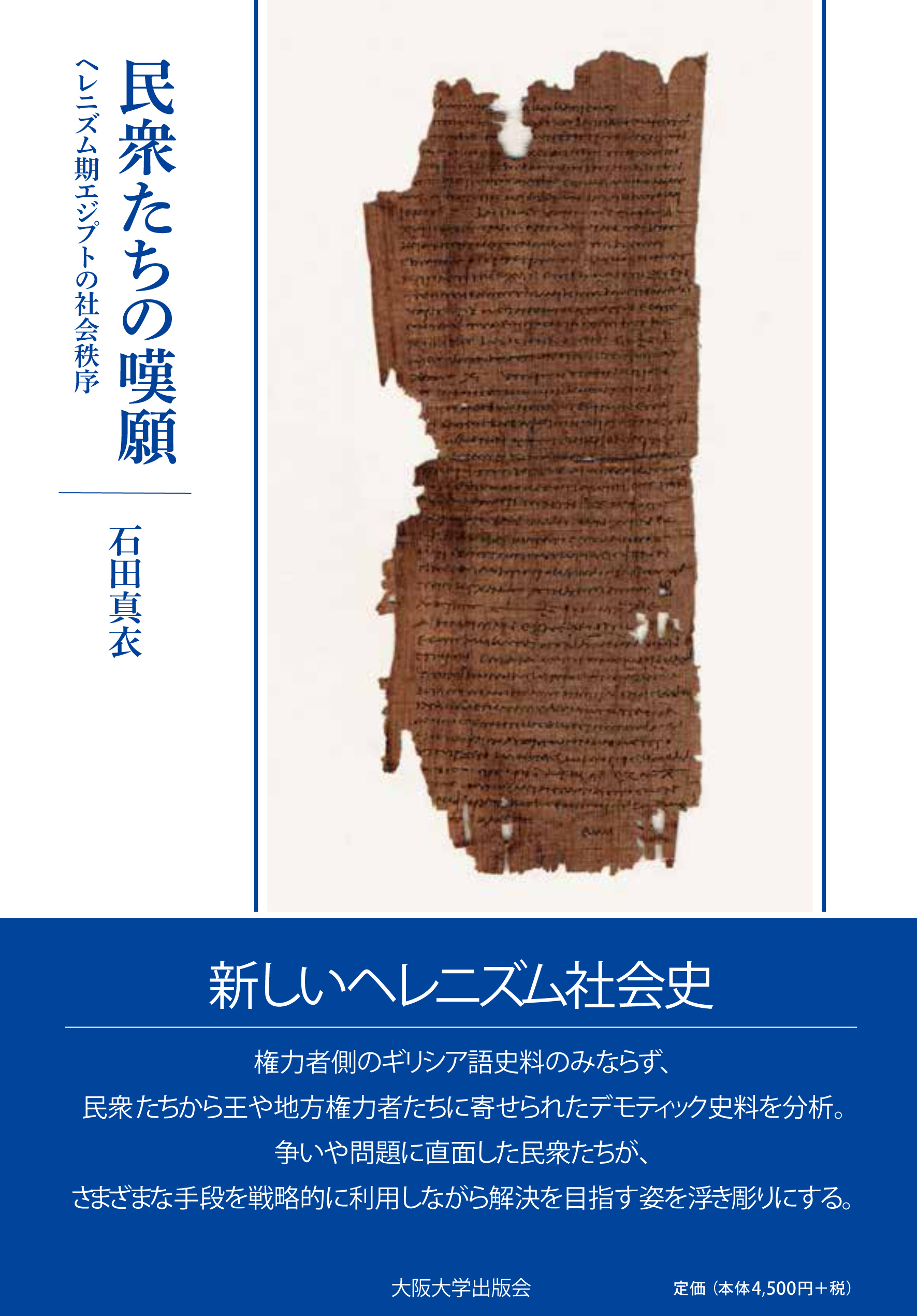 『民衆たちの嘆願:ヘレニズム期エジプトの社会秩序』(石田真衣・著)の書評が、『西洋史学』278号に掲載されました。評者は髙橋亮介先生(東京都立大学人文社会学部)です。